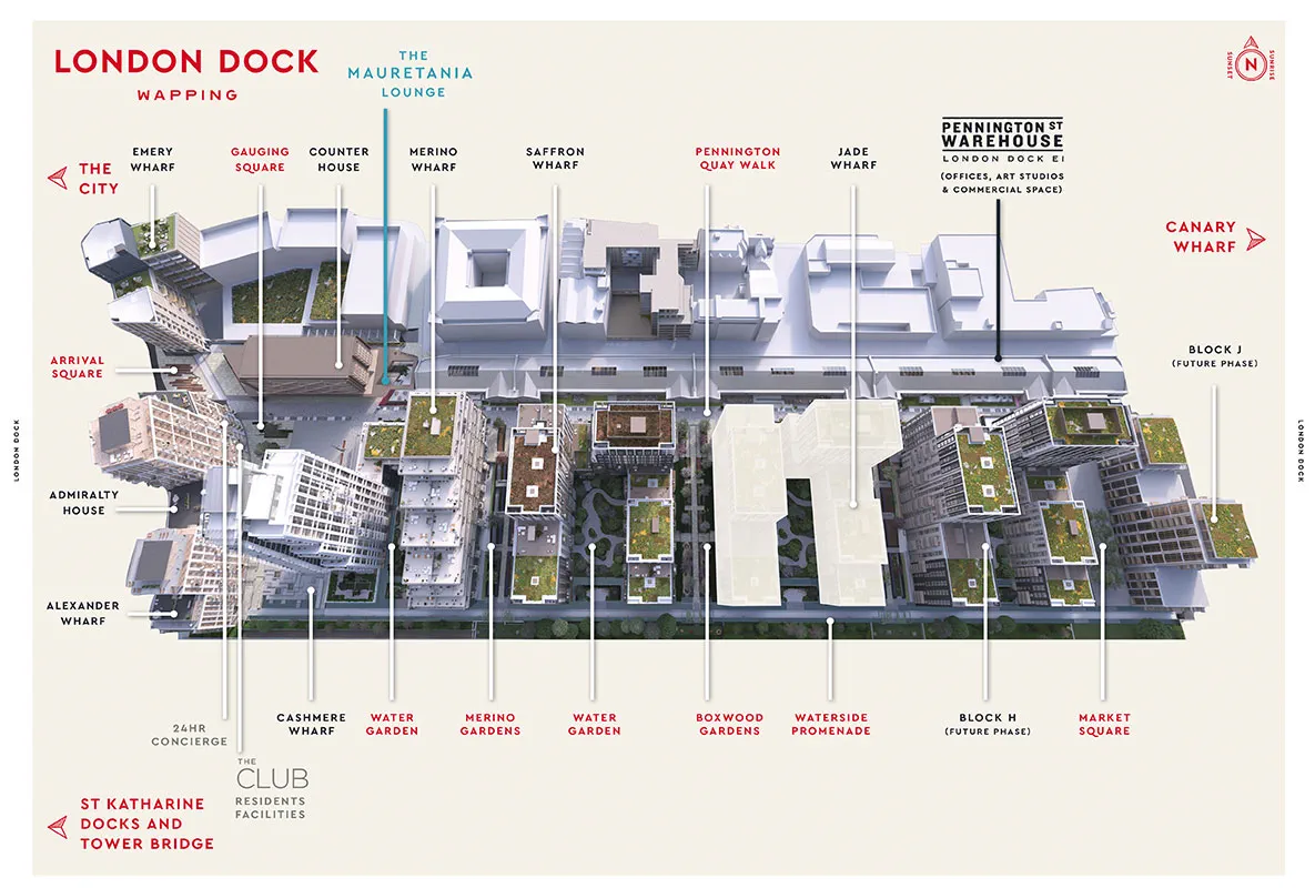 Discover the unique charm of London Dock by St George, an exciting new destination of 2,038 high quality homes. Nestled in the heart of Wapping, London Dock is moments from the iconic landmarks of Tower Bridge, the Tower of London, St Katharine Docks, and the bustling city.